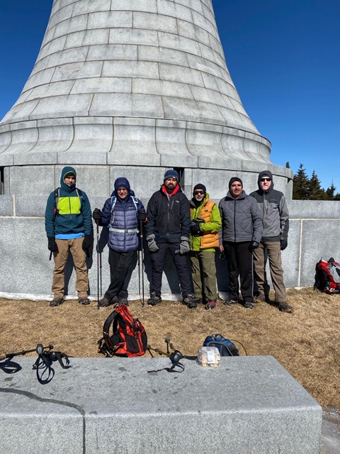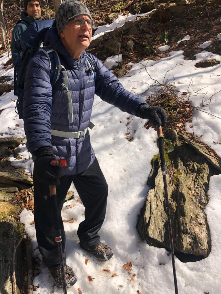 Shaukat always amazes me. He continues to have the energy of a teenager. He is such a role model for all of us. Praying for his health, we started going up. The hike was easier but made hard due to the layer of snow. There is not much scenery till you reach the top. Slowly we made our way up to the Greylock tower. It was very windy, and the wind chill made many of us wear our wind breakers again. We took out our snacks and warmed ourselves with hot chocolate. Taking some pictures and soaking up the scenery of the Berkshire valley we rested for a few minutes before deciding to go down the Gould trail for a change in scenery.